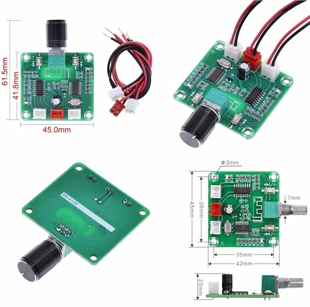 XH-A158 PAM8403 Bluetooth 5.0 Kablosuz Hoparlör Amplifikatör Devresi, kompakt boyutlarına rağmen yüksek kaliteli ses deneyimi sunan çok fonksiyonlu bir ses çözümüdür. PAM8403 sınıf D amplifikatör entegresi ile her kanal için 3W güç sağlayan bu modül, dahili Bluetooth 5.0 bağlantısı sayesinde akıllı telefonlar ve diğer Bluetooth cihazlarından kablosuz ses aktarımı yapabilir. Aynı zamanda micro SD kart, USB flash bellek ve 3.5mm AUX girişi desteği ile çeşitli kaynaklardan ses çalma özelliğine sahiptir.