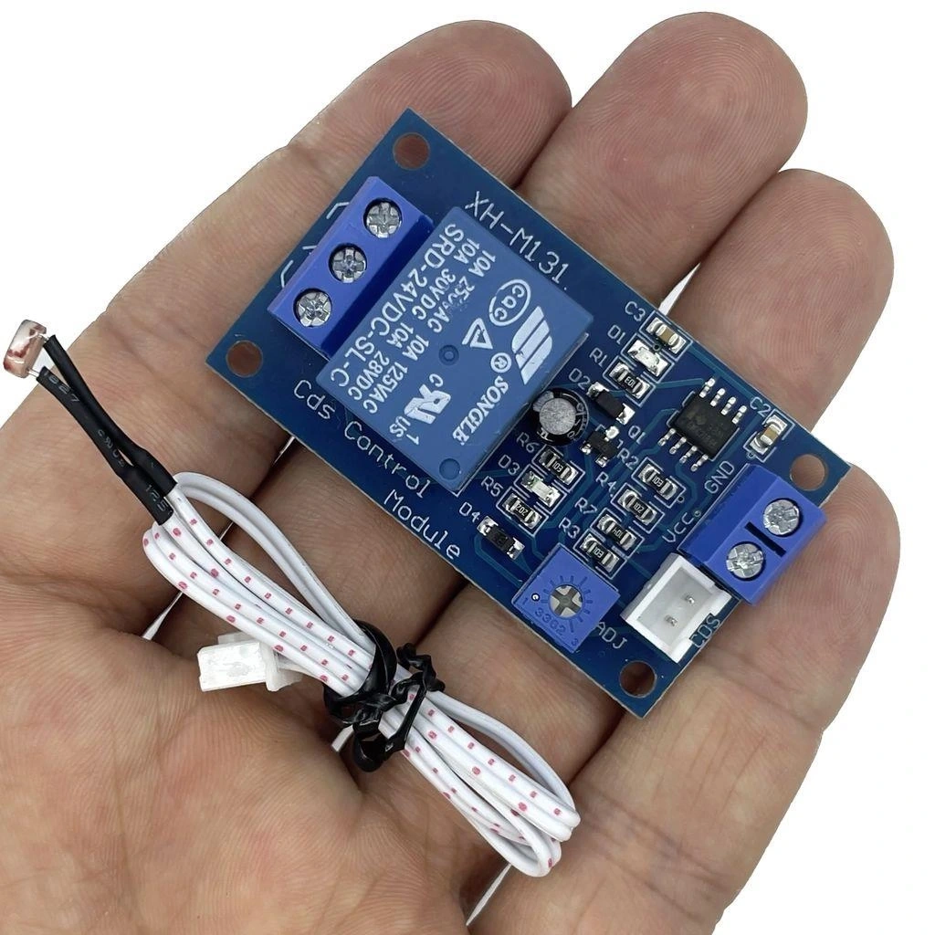 XH-M131 24V LDR Işık Kontrollü Röle, ortam ışık seviyesini algılayarak otomatik aydınlatma kontrolü sağlayan pratik bir modüldür. Üzerindeki LDR (Işığa Bağlı Direnç) sensörü sayesinde ortam ışığına göre bağlı cihazları açıp kapatabilir.