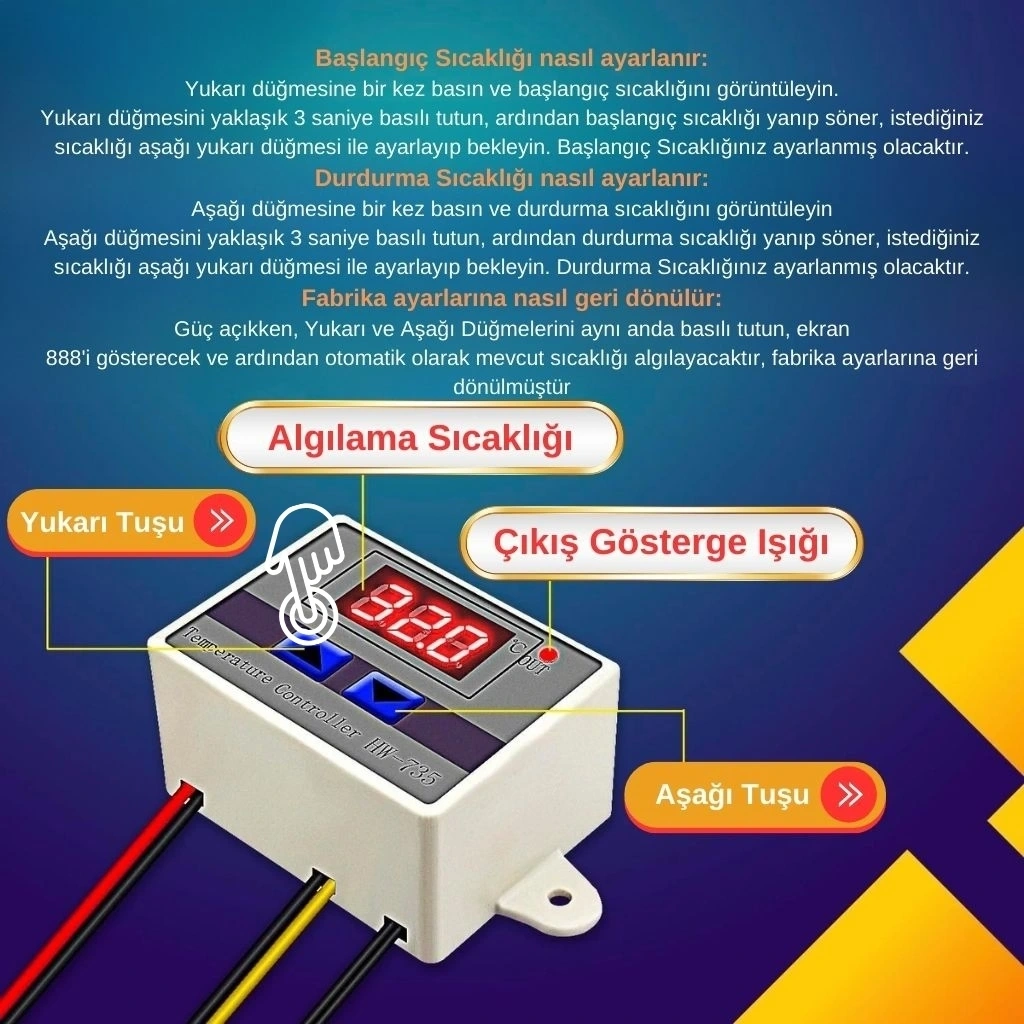 Bu ölçüm ve test aleti, mikroişlemci kontrollü yapısı ile 0.1°C hassasiyette okuma yapabilir ve kullanıcı tarafından ayarlanabilen histerezis değeri sayesinde farklı kontrol senaryolarına uyum sağlar. Cihaz üzerindeki üç buton ile tüm ayarlamalar kolayca yapılabilir. Ayrıca ayarlanan değerler, elektrik kesintilerinde bile kalıcı hafızada saklanır, böylece tekrar programlama gerekmez.