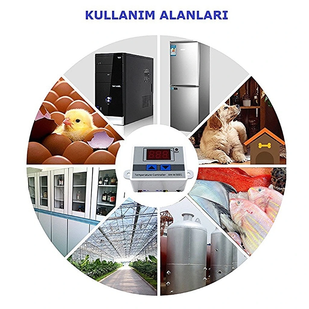 XH-W3001 220V AC Dijital Termostat 1500W'nin kullanılabileceği çeşitli alanlar ve uygulamalar.