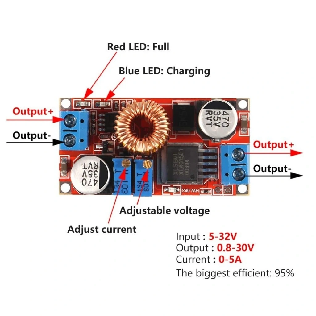 - OUT+ ve OUT-: Çıkış voltajı bağlantıları