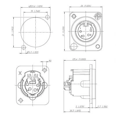 XLR Konnektör Panel Tipi Dişi - 3 Pin