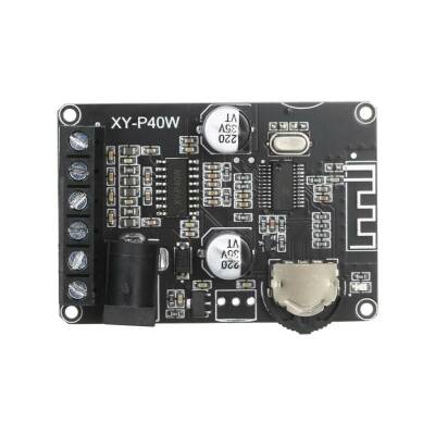 XY-P40W, yüksek güçlü bir stereo Bluetooth ses modülüdür. Çift kanala sahiptir iki hoparlör bağlanabilir. Klamens uçlarından 5-24V arası DC bir kaynak ile beslenebilir. Ayrıca 2.5mm uca sahip 12v yada 24v bir adaptörle besleyebilirsiniz. Kullanımı oldukça kolaydır. SPK1 ve SPK2 uçlarından hoparlörler bağlanır. Ardından telefonunuzla yada bilgisayarınızla bluetooth bağlantısı kurarak ses dosyalarınızı dinleyebilirsiniz.