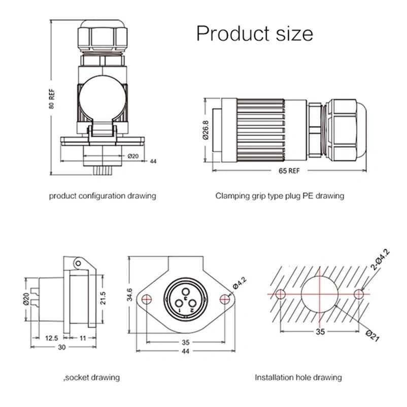 YA-20-J02PE-01-001 2-Pin Su Geçirmez Konnektör - Dişi YA serisi, benzersiz bir kilitli tasarıma sahiptir ve fiş ile priz arasında sıkı bir kilitleme sağlar. Alaşım malzemeden yapılmış soketin otomatik kapanan su geçirmez kapağı ve kullanım rahatlığını artırır. Uluslararası endüstriyel ekipmanın çevre koruma gereksinimlerini karşılar. Hızlı fiş tasarımı tek elle tak/çıkar olanağı sağlar. Soket ve adaptör fişi, bağlantı için yaylı geçmeli kilit kullanır, rahat ve güvenilirdir, darbeye dayanıklıdır. PBT malzeme kabuğu, istikrarlı elektrik performansı, basınca dayanıklı, yüksek sıcaklık direnci, korozyon önleyici. YA-20-C02SX-03-201 2-Pin Su Geçirmez Konnektör - Erkek ile birlikte kullanabilirsiniz. CNLINKO ürünlerinde isteğinize bağlı kablolu üretim yapılabilir. Özel üretim toplu alımlar için geçerlidir. Özel istekleriniz için [email protected] ‘a mail atabilirsiniz. Teknik Özellikler Bağlandığında IP67 sınıfı Kablo özellikleri: 12-14 AWG Çap aralığı: Φ8mm~Φ12mm Kontak çapı × numarası: Φ2.7×2 Anma Akımı (A): 20A Çalışma gerilimi (AC.V.rms): 500V Kontak direnci:.