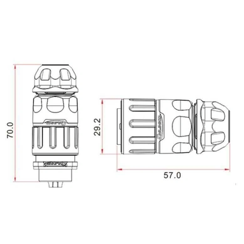 YM-20-C02PE-02-001 2-Pin Su Geçirmez Konnektör - Erkek YM-20 serisi konektörler, küçük boyutları, esnek çalışmaları ve otomatik takma ve çıkarmaları nedeniyle görsel-işitsel ekipman, tıbbi ekipman, endüstriyel kontrol, muayene ve ölçüm gibi çeşitli zorlu ortamlarda ve durumlarda yaygın olarak kullanılmaktadır. Kompakt bileşenler, basit kullanım, hızlı ve kararlı bağlantı, IP67 dereceli dış mekan su geçirmezlik performansı. Kaliteyi ve uluslararası endüstriyel ekipmanların çevre koruma gereksinimlerini karşılar. Hızlı fiş tasarımı, tek elle takıp/çıkarmayı sağlar. Gücün bakır iğnesi, korozyona dayanabilen ve yüksek düşük sıcaklıklar için uygun olan altın kaplama teknolojisini benimsemiştir. YM-20-J02SX-02-401 2-Pin Su Geçirmez Konnektör - Dişi ile uyumludur. CNLINKO ürünlerinde isteğinize bağlı kablolu üretim yapılabilir. Özel üretim toplu alımlar için geçerlidir. Özel istekleriniz için [email protected] ‘a mail atabilirsiniz. Teknik Özellikler Yüksek sıcaklık ve basınç direnci Bağlandığında IP65/67 sınıfı Pin Sayısı: 2 Pin Çapı - 2.7 mm Kablo Bağlantısı - 8-12 AWG Anma Akımı - 20 Amper Çalışma Gerilimi - 500V AC Kontak Direnci -.