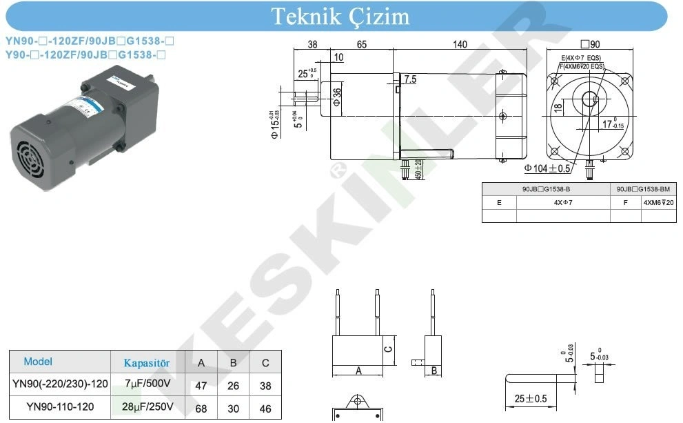 YN90-120 220V 120W 435RPM AC Motor YN90-120 90mm redüktör çapına sahip, 120 watt gücünde endüstriyel uygulamalarda ve makine imalatında sıkça tercih edilen bir motor çeşididir. Ürüne ait teknik çizim, devir ve tork bilgileri aşağıda yer almaktadır. Diğer devir seçenekleri ve toplu alımlar için bizimle iletişime geçebilirsiniz. .