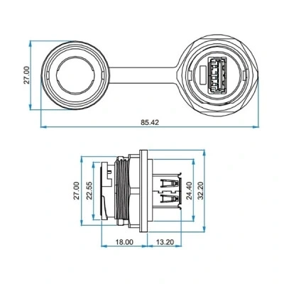 YU-USB2-JSX-01-001 Su Geçirmez USB Konnektör - Dişi
