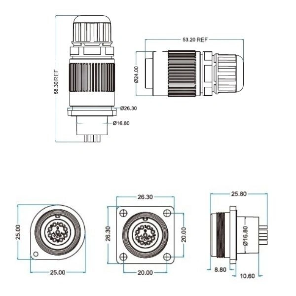 YW-16-J09PE-03-001 9-Pin Su Geçirmez Konnektör - Dişi YW serisi konnektörlerin dış kasası çinko alaşımlı malzemeden yapılmıştır, elektronik sinyali etkili bir şekilde koruyabilir, vidalı kilitleme tasarımıyla birlikte, onu seçmek için en güvenilir hale getirir. Kompakt bileşenler, basit kullanım, hızlı ve kararlı bağlantı, IP67 dereceli dış mekan su geçirmez performansı. Uluslararası endüstriyel ekipmanın kalitesini karşılayın ve çevre koruma gereksinimlerini karşılayın. Hızlı fiş tasarımı tek elle tak/çıkar işlemine olanak tanır. Tüm Çinko alaşımlı kabuk, elektromanyetik bozulmaya karşı iyi bir direnme kapasitesine sahiptir, vida dişli bağlantı. Soket, kare flanş aracılığıyla panele monte edilir, hızlı ve kolay somun kilitleme sistemi tasarımı, temas parçası iletkenin ucuyla kaynaklanmalıdır. YW-16-C09SX-03-401 9-Pin Su Geçirmez Konnektör - Erkek ile uyumludur. CNLINKO ürünlerinde isteğinize bağlı kablolu üretim yapılabilir. Özel üretim toplu alımlar için geçerlidir. Özel istekleriniz için [email protected] ‘a mail atabilirsiniz. Teknik Özellikler Yüksek sıcaklık ve basınç direnci Bağlandığında IP65/67 sınıfı Pin Sayısı: 9 Pin Çapı - 1 mm Kablo Bağlantısı - 24-26 AWG Anma Akımı - 5 Amper Çalışma Gerilimi - 400V AC Kontak Direnci -.