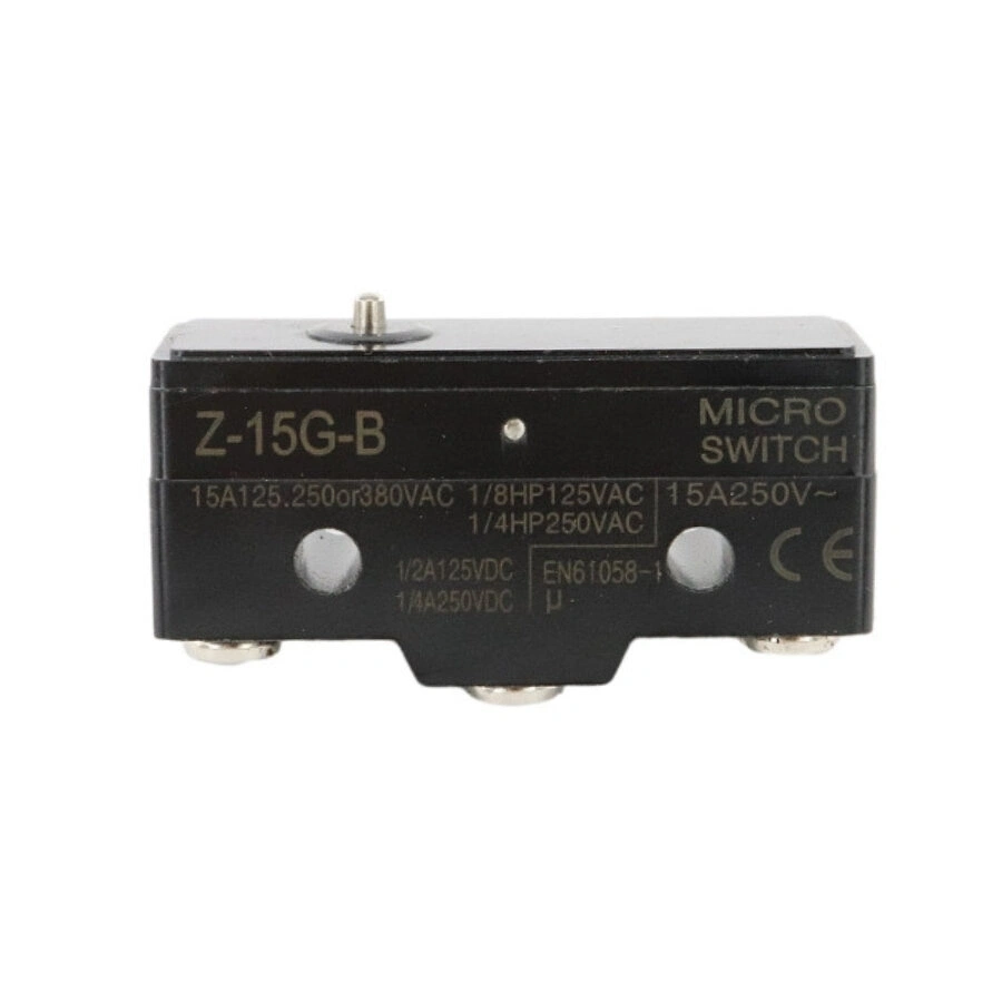 Z-15G-B Micro Switch 3-Pin Z-15G-B Micro Switch 3-Pin, güvenilir ve hassas anahtarlama için tasarlanmış büyük mikro anahtardır. 250 VAC'de 15 A'lik yüksek anahtarlama kapasitesiyle yüksek akımlı uygulamalar için ideal seçimdir. Kullanım Alanları CNC tezgahları Üretim Hatları Konveyör Sistemleri Robot Kollar Kapı sistemi durdurma mekanizmaları Otomatik sistemlerde güvenlik durdurması için “limit” noktası algısı Özellikler Kontakt Direnci: 15mOhm İzolasyon Direnci: 100mOhm (@500VDC) Dielektrik Gücü: 1000VAC, 50/60 Hz 1dk Hareket Frekansı; Mekanik: 240 kez/dakika Elektriksel: 20 kez/dakika Çalışma Sıcaklık Aralığı: -25 ~ 80°C Elektriksel Ömür: 500000 Akım Tablosu Pinout