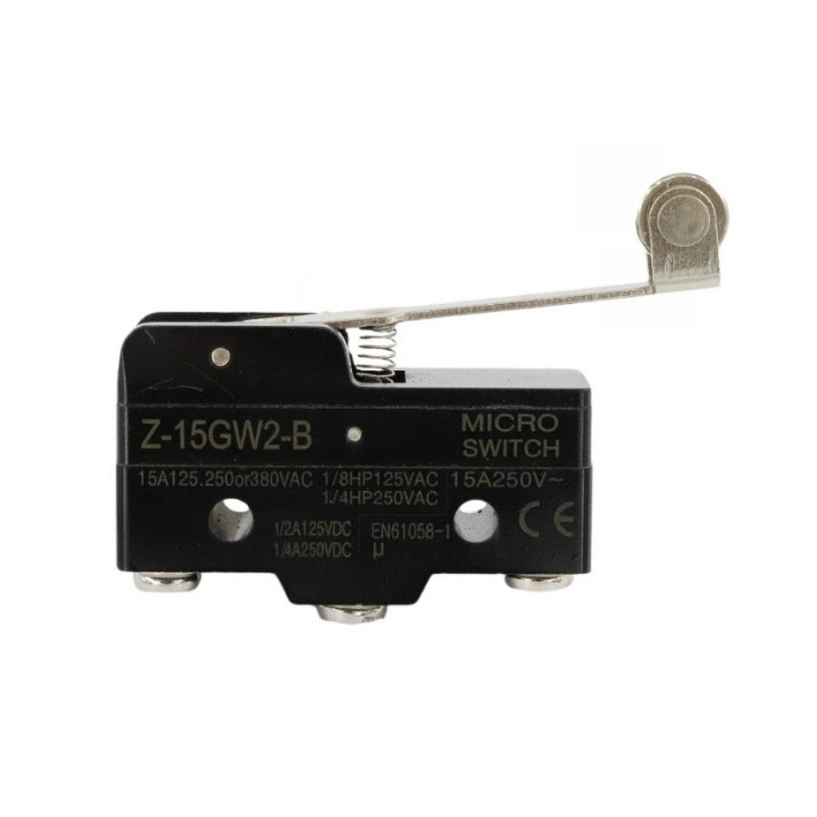 Z-15GW2-B Micro Switch 3-Pin Z-15GW2-B Micro Switch 3-Pin, güvenilir ve hassas anahtarlama için tasarlanmış büyük mikro anahtardır. 250 VAC'de 15 A'lik yüksek anahtarlama kapasitesiyle yüksek akımlı uygulamalar için ideal seçimdir. Kullanım Alanları CNC tezgahları Üretim Hatları Konveyör Sistemleri Robot Kollar Kapı sistemi durdurma mekanizmaları Otomatik sistemlerde güvenlik durdurması için “limit” noktası algısı Özellikler Kontakt Direnci: 15mOhm İzolasyon Direnci: 100mOhm (@500VDC) Dielektrik Gücü: 1000VAC, 50/60 Hz 1dk Hareket Frekansı; Mekanik: 240 kez/dakika Elektriksel: 20 kez/dakika Çalışma Sıcaklık Aralığı: -25 ~ 80°C Elektriksel Ömür: 500000 Akım Tablosu Pinout