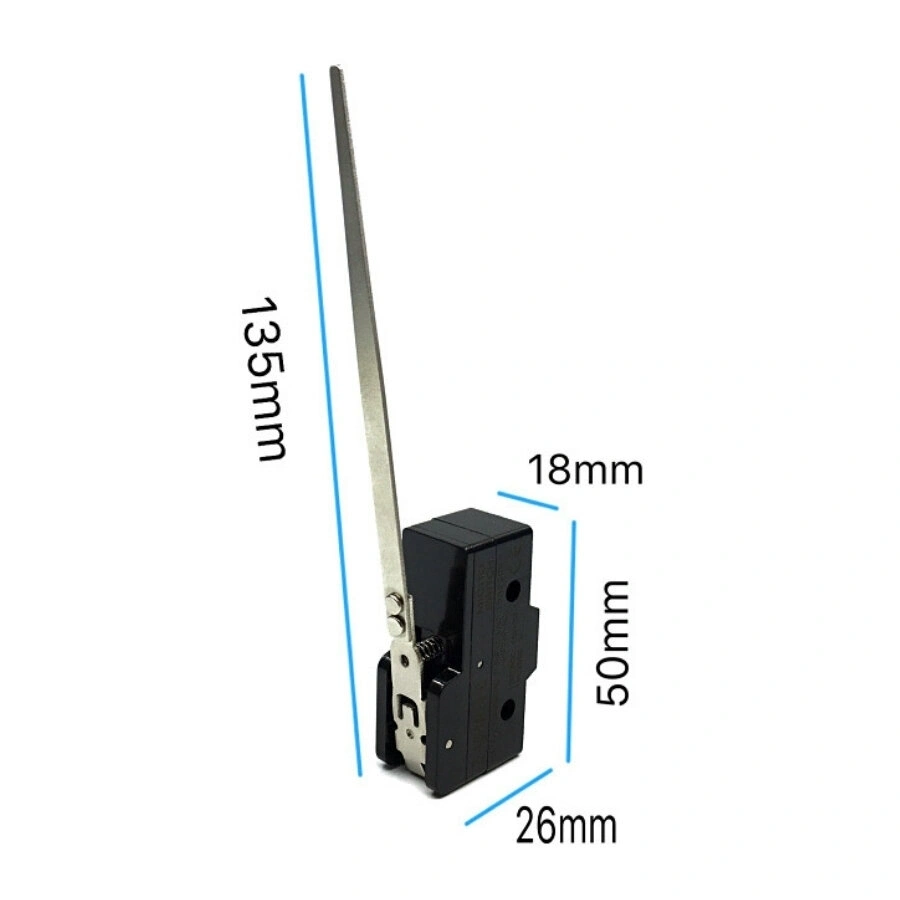Z-15HW24-B Micro Switch 3-Pin Z-15HW24-B Micro Switch 3-Pin, güvenilir ve hassas anahtarlama için tasarlanmış büyük mikro anahtardır. 250 VAC'de 15 A'lik yüksek anahtarlama kapasitesiyle yüksek akımlı uygulamalar için ideal seçimdir. Kullanım Alanları CNC tezgahları Üretim Hatları Konveyör Sistemleri Robot Kollar Kapı sistemi durdurma mekanizmaları Otomatik sistemlerde güvenlik durdurması için “limit” noktası algısı Özellikler Kontakt Direnci: 15mOhm İzolasyon Direnci: 100mOhm (@500VDC) Dielektrik Gücü: 1000VAC, 50/60 Hz 1dk Hareket Frekansı; Mekanik: 240 kez/dakika Elektriksel: 20 kez/dakika Çalışma Sıcaklık Aralığı: -25 ~ 80°C Elektriksel Ömür: 500000 Akım Tablosu Pinout