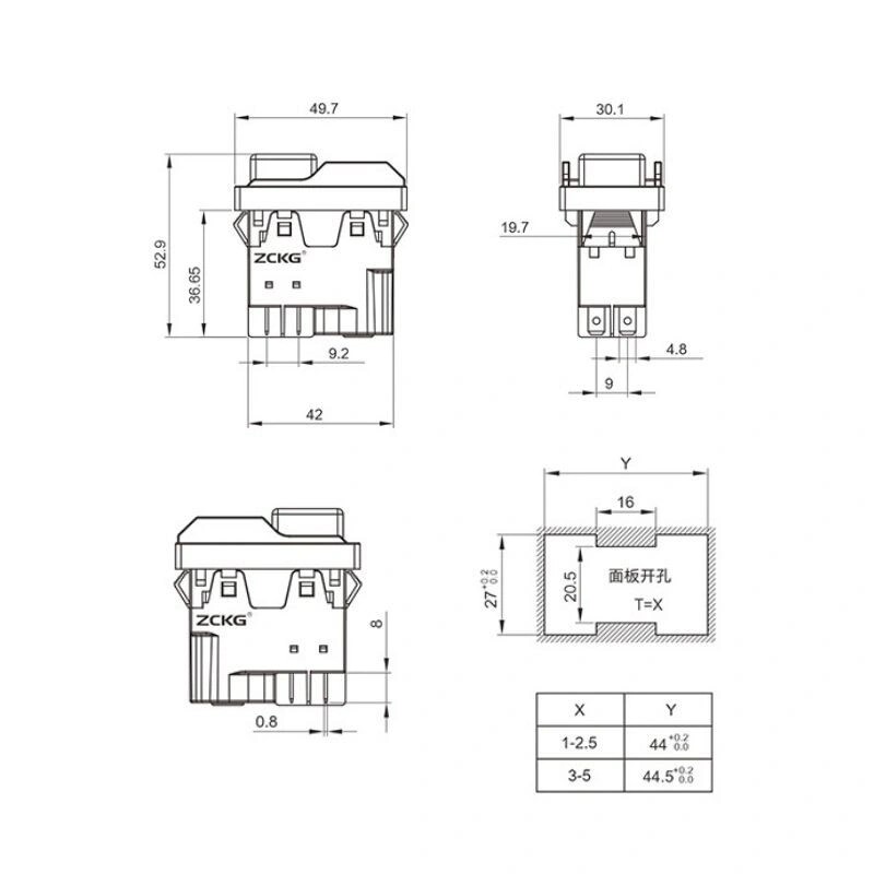 ZCD-01 4-Pin Elektromanyetik Switch ZCD-01 4-Pin Elektromanyetik Switch, çeşitli tezgah ve torna tipi birçok makineye uygun elektromanyetik butondur. Gemilerde, teknelerde, taşlama makinelerinde kullanabilir. Su geçirmez özelliği bulunmaktadır. Datasheet Özellikler Model: ZCD-01 Terminal: 4 Pin Voltaj: 220VAC Anma Akımı: 12A Frekans: 50/60Hz IP55 Kullanım Ömrü: > 50000 kez.