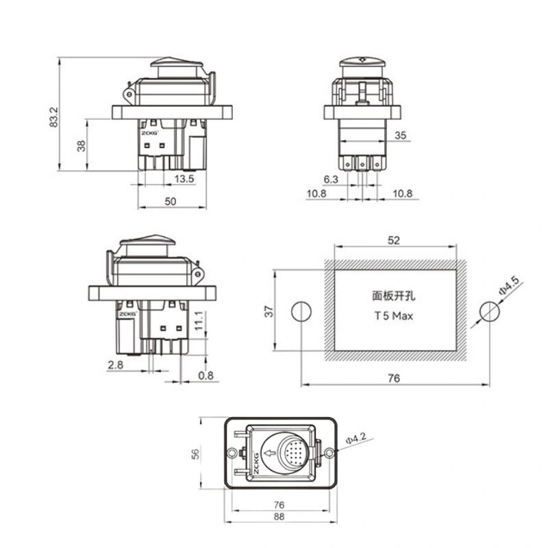 ZCD-03B 7-Pin Elektromanyetik Switch ZCD-03B 7-Pin Elektromanyetik Switch, çeşitli tezgah ve torna tipi birçok makineye uygun elektromanyetik butondur. Gemilerde, teknelerde, taşlama makinelerinde kullanabilir. Su geçirmez özelliği bulunmaktadır. Datasheet Özellikler Model: ZCD-03B Terminal: 7 Pin Voltaj: 400VAC Anma Akımı: 15A Frekans: 50/60Hz IP55 Kullanım Ömrü: > 50000 kez.