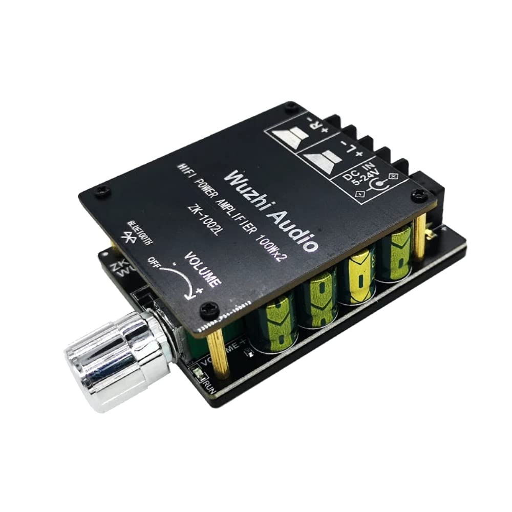 ZK-1002L, çift kanallı (stereo) 2x100W çıkış gücüne sahip, Bluetooth 5.0 teknolojisi ile donatılmış bir amfi devresidir. Yüksek kaliteli ses çıkışı ve kablosuz bağlantı özellikleri sayesinde hoparlör ve ses sistemlerinizi Bluetooth üzerinden kolayca kontrol etmenize olanak tanır. Üzerindeki potansiyometre ile ses, bas ve tiz ayarlarını yapabilir; AUX girişi ile kablolu bağlantı da kurabilirsiniz. Kompakt tasarımı ve kolay kurulumu ile DIY ses projeleri için idealdir.