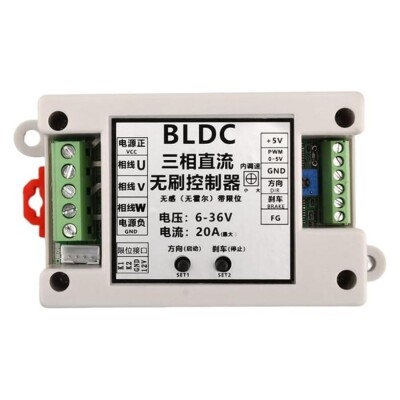 ZS-X14 DC 6-36V 20A BLDC 3 Fazlı Fırçasız Motor Sürücü, BLDC fırçasız DC motorlar için tasarlanmıştır. Kontrolör, dönme hızını ayarlamanıza ve motorun dönüş yönünü değiştirmenize izin verir. 6\\\'dan 36V DC\\\'ye kadar geniş besleme gerilimi aralığı vardır, modülün maksimum çıkış gücü 400W\\\'dır.